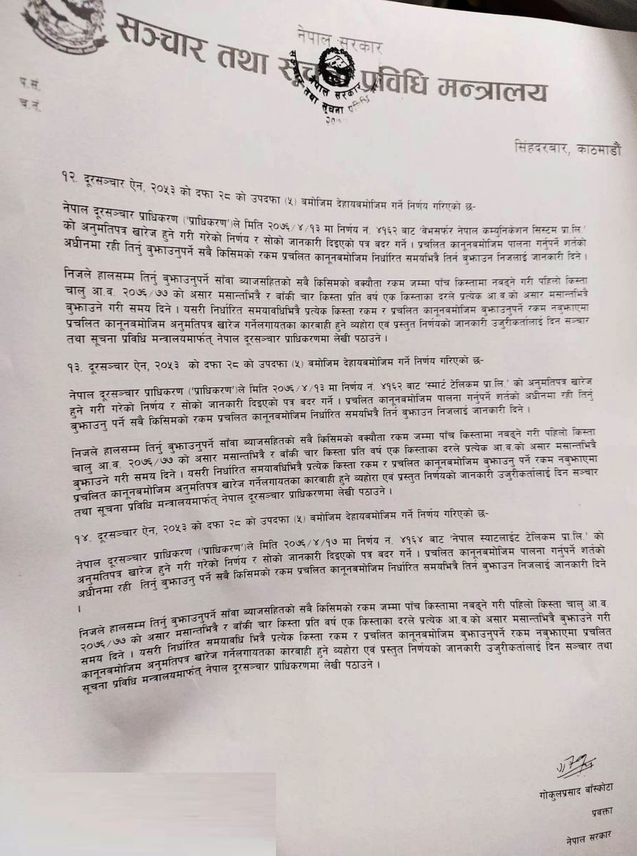 बिहीबार पत्रकार सम्मेलनमार्फत् सरकार प्रवक्ता एवं सञ्चार तथा सूचना प्रविधि मन्त्री गोकुल बाँस्कोटाले मन्त्रिपरिषद् बैठकका निर्णय सार्वजनिक गरेका हुन् ।