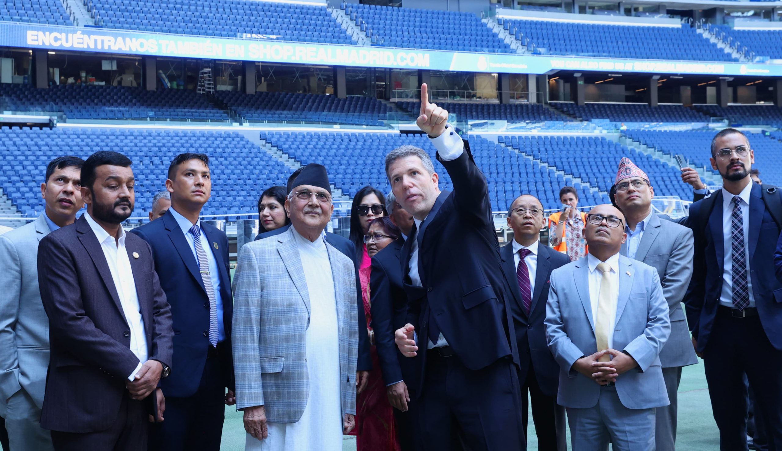 प्रधानमन्त्री ओलीद्वारा रियल मेड्रिडको रङ्गशाला अवलोकन