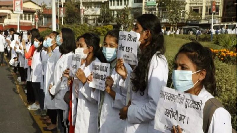 भारतविरुद्ध नेविसंघले काठमाडौंमा प्रदर्शन गर्दै