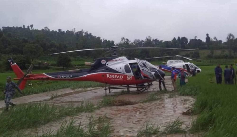 लुक्लाबाट उडेका ४ हेलिकप्टर काभ्रेमा आकस्मिक अवतरण