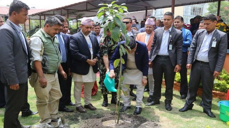 विश्व वातावरण दिवशको अवसरमा प्रधानमन्त्रीले सिंहदरबारमा रोपे विरुवा