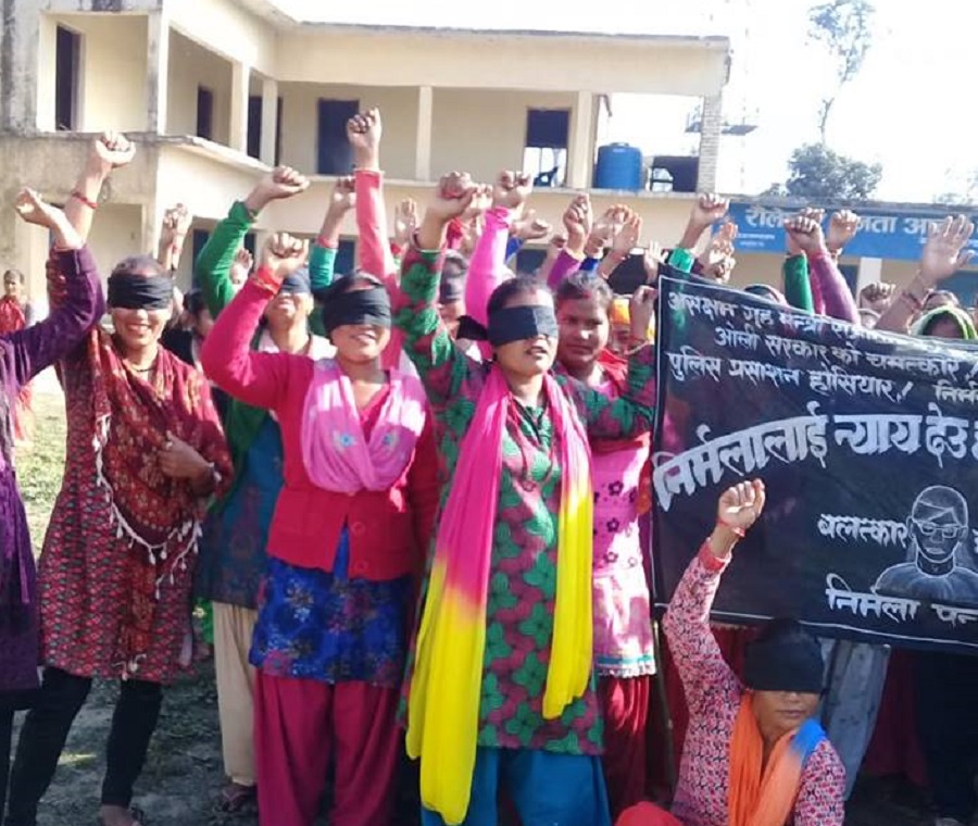 निर्मलालाई न्याय माग्दै महिलाले आखाँमा कालोपट्टी बाधेर बिरोध प्रदर्शन