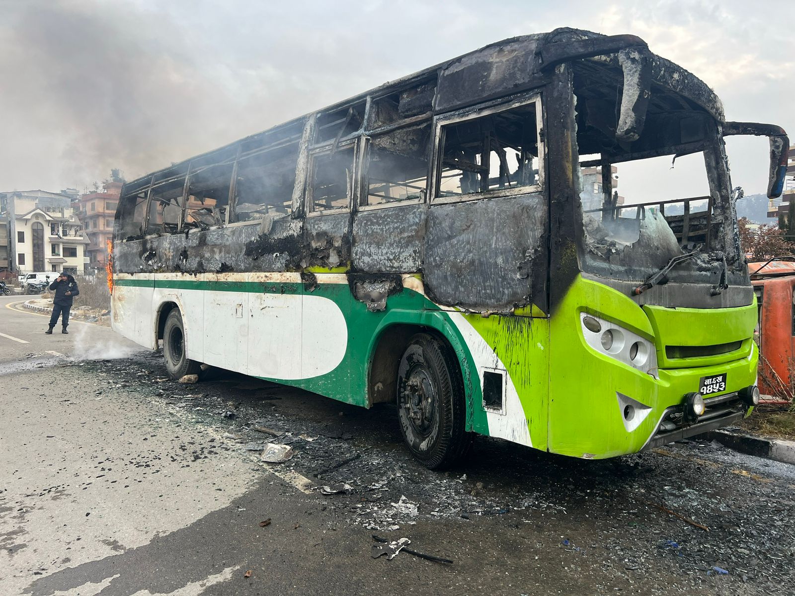 कीर्तिपुरमा राेकि रहेकाे गाडीमा आगजनी