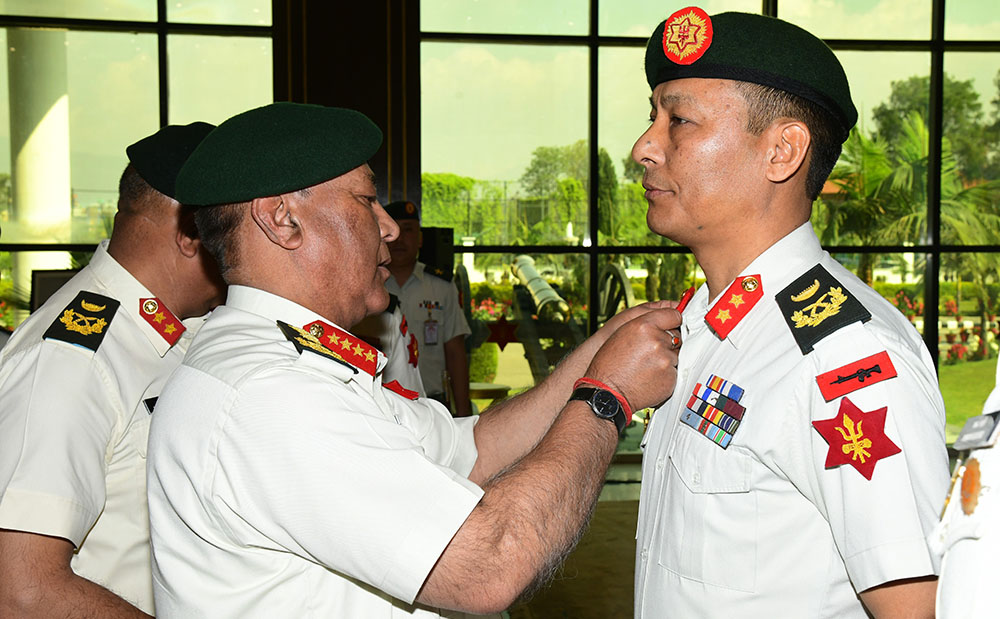 प्रधान सेनापतिद्वारा दुई सैनिक अधिकृतलाई उपरथीको दर्ज्यानी चिन्ह प्रदान