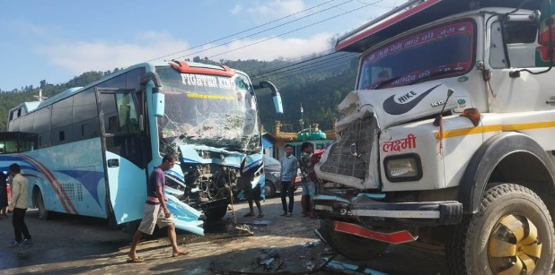 धादिङमा बस र टिपर ठोक्किए, ११ जना घाइते