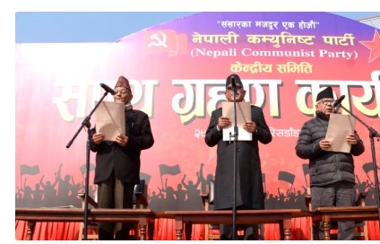 प्रचण्ड र नेपालले लिए नेकपाको शपथ