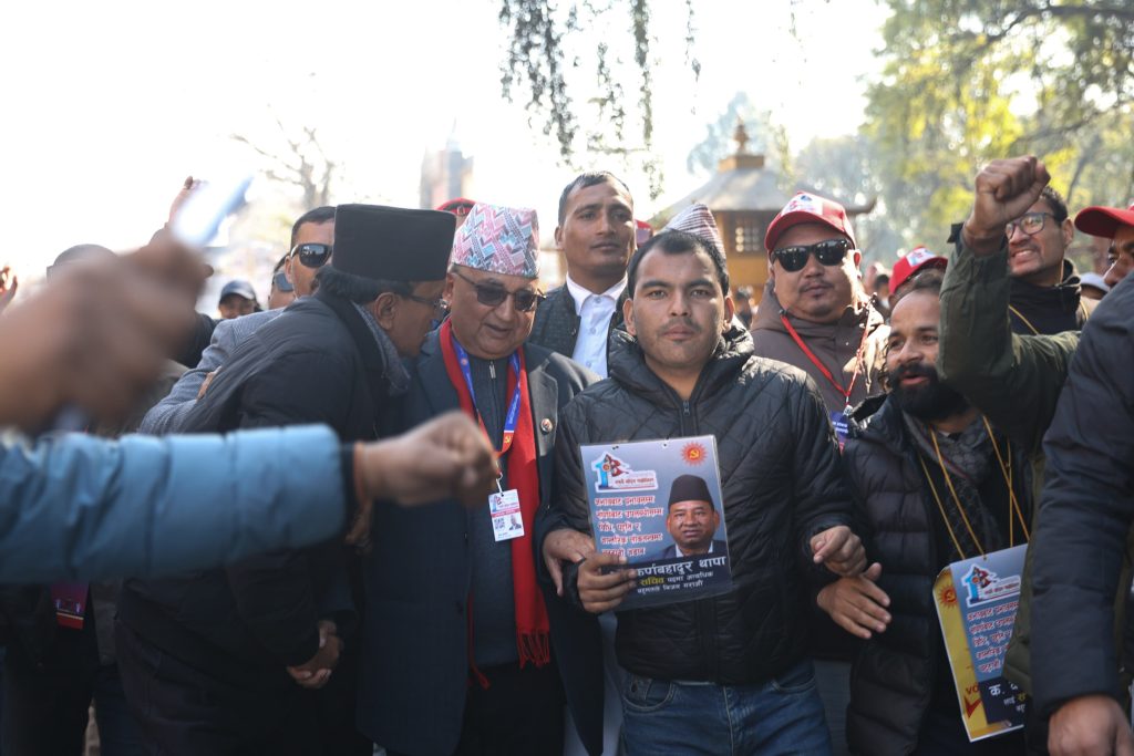 भृकुटीमण्डपमा मत माग्न व्यस्त एमाले नेता–कार्यकर्ता