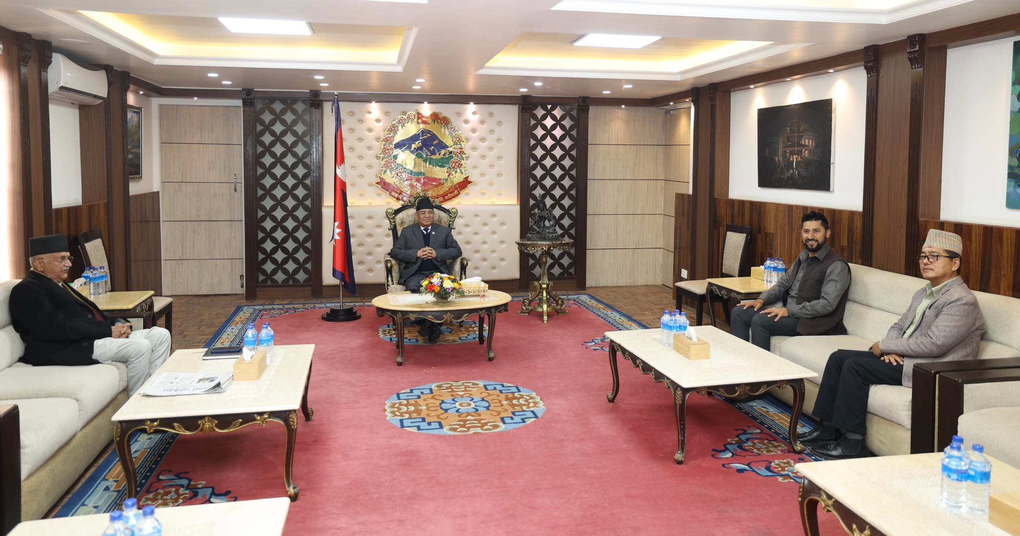 संयन्त्रको बैठक स्थगित गरेर छलफलमा जुटे प्रधानमन्त्री प्रचण्ड र एमाले अध्यक्ष ओली