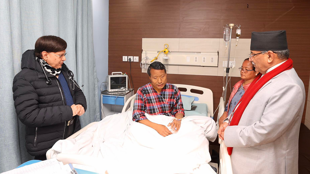 प्रधानमन्त्री प्रचण्ड वर्षमानलाई भेट्न अस्पताल पुगे