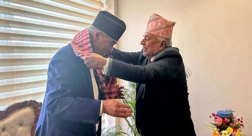संसदीय दलकाे नेतामा निर्वाचित भएपछि रामचन्द्रले देउवालाई दिए बधाई