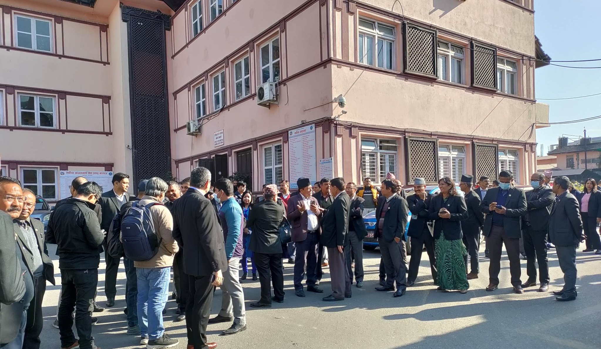 चोलेन्द्रलाई सर्वोच्च छिर्न नदिन कानुन व्यवसायीहरुको गेटमा धर्ना सुरु