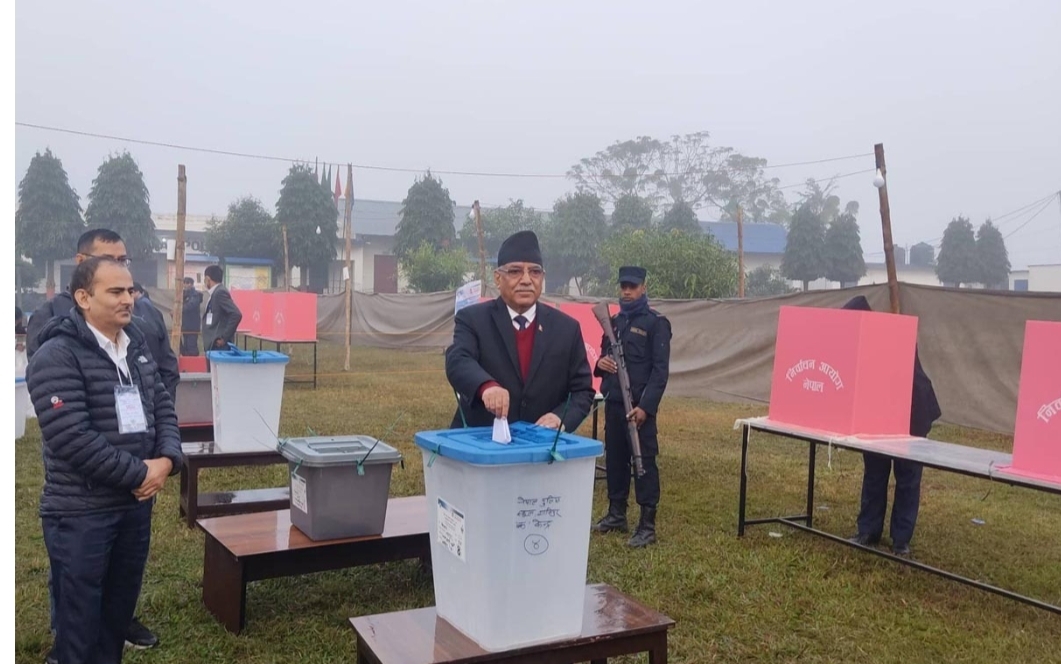 चितवनमा प्रचण्डले गरे मतदान