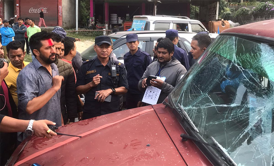 रवि लामिछानेको घरदैलो कार्यक्रममा प्रयोग भएको गाडी तोडफोड