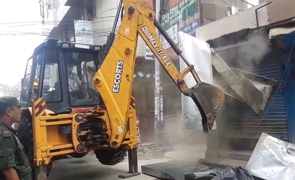 सोह्रखुट्टे क्षेत्रका अनधिकृत संरचनामाथि चल्यो महानगरको डोजर