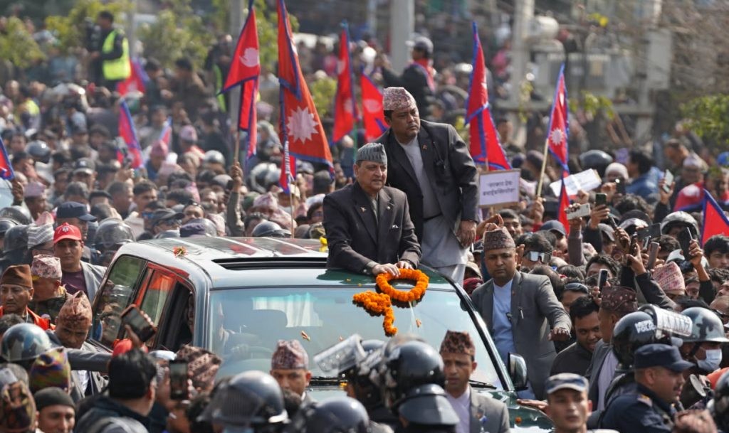 काठमाडौं आइपुगे पूर्वराजा शाह, विमानस्थलमा समर्थकको स्वागत
