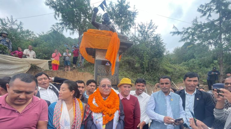 नुवाकोटको ककनीमा प्रचण्डले अनावरण गरे स्वर्गीय पुत्र प्रकाशको शालिक