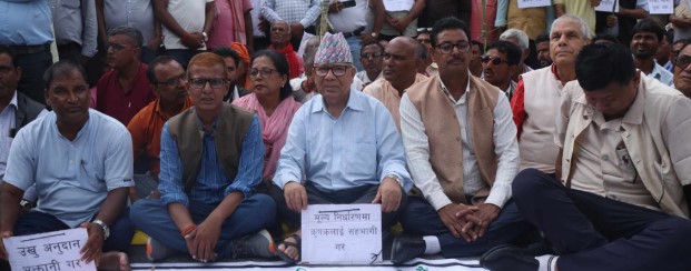 माइतीघरमा उखु किसानसँगै धर्नामा बसे माधव नेपाल