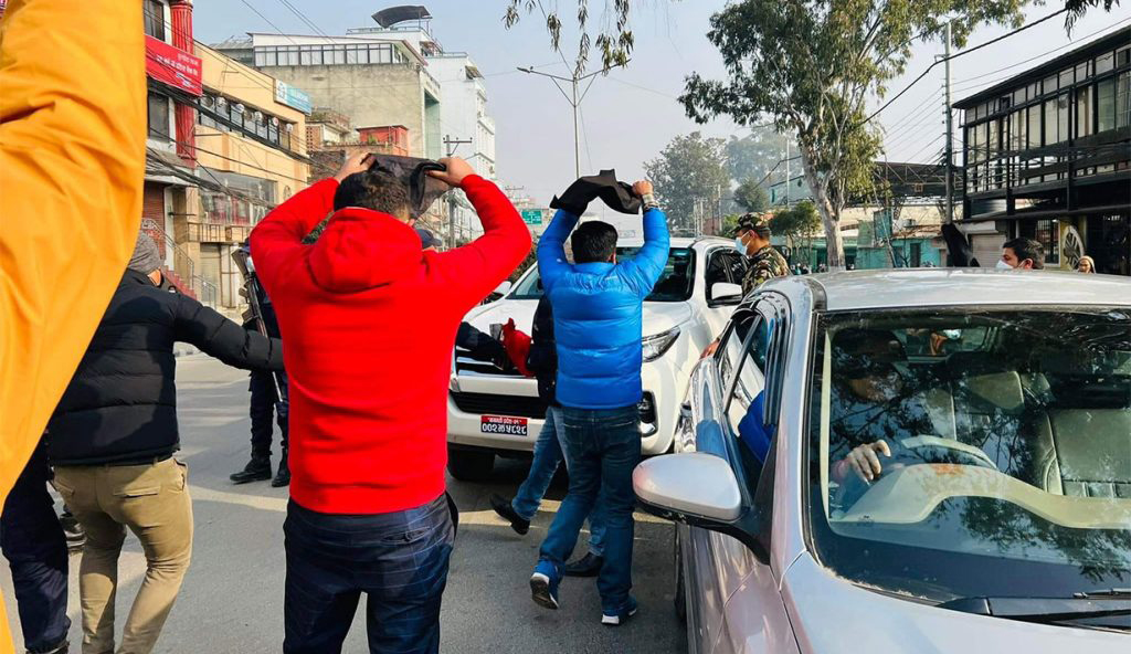 मन्त्रीको बाटो छेकेर पुल्चोकमा अनेरास्ववियुले देखायो कालो झण्डा