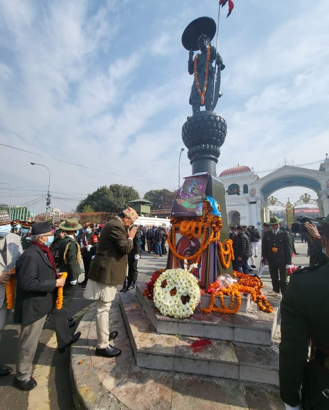 सिंहदरबार पुगेर कमल थापाले गरे पृथ्वीनारायण शाहको शालिकमा माल्यार्पण