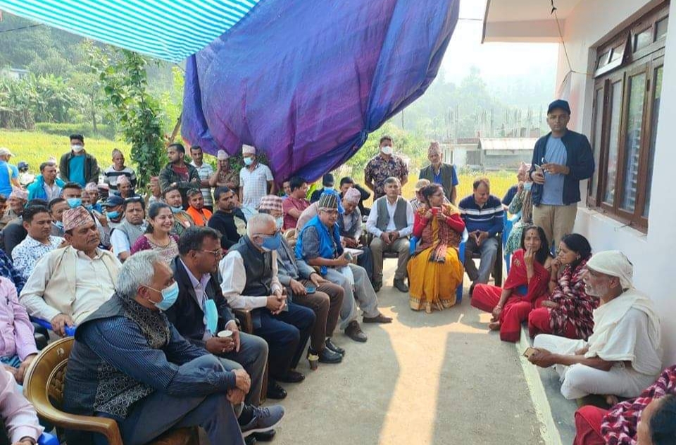 मातृशाेकमा रहेका नेता अधिकारी भेट्न कोईराला सहित दर्जनौं नेता पुगे धादिङ