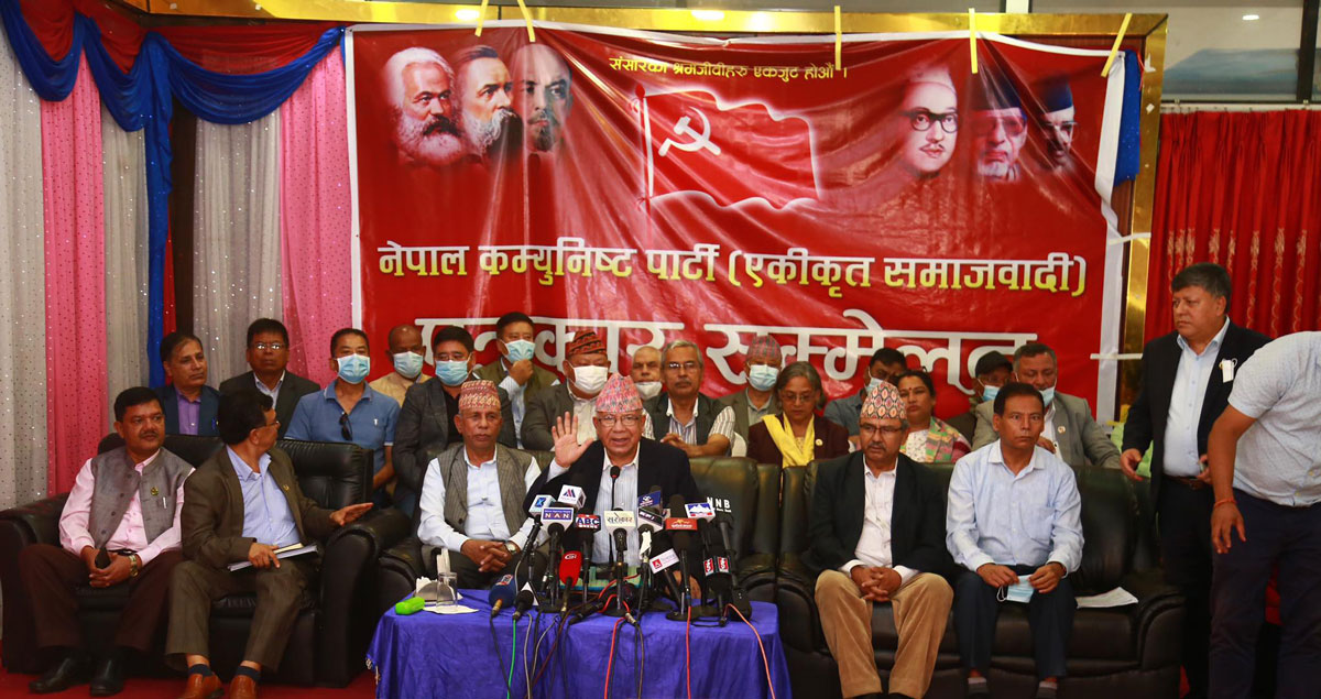 माधव नेपालले आकस्मिक पत्रकार सम्मेलन गर्दै