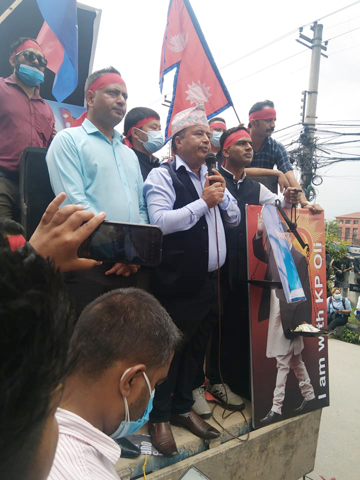 माइतीघर मण्डल अगाडि ओलि समर्थकको प्रदर्शन, सर्वाेच्चको फैसला अस्विकार